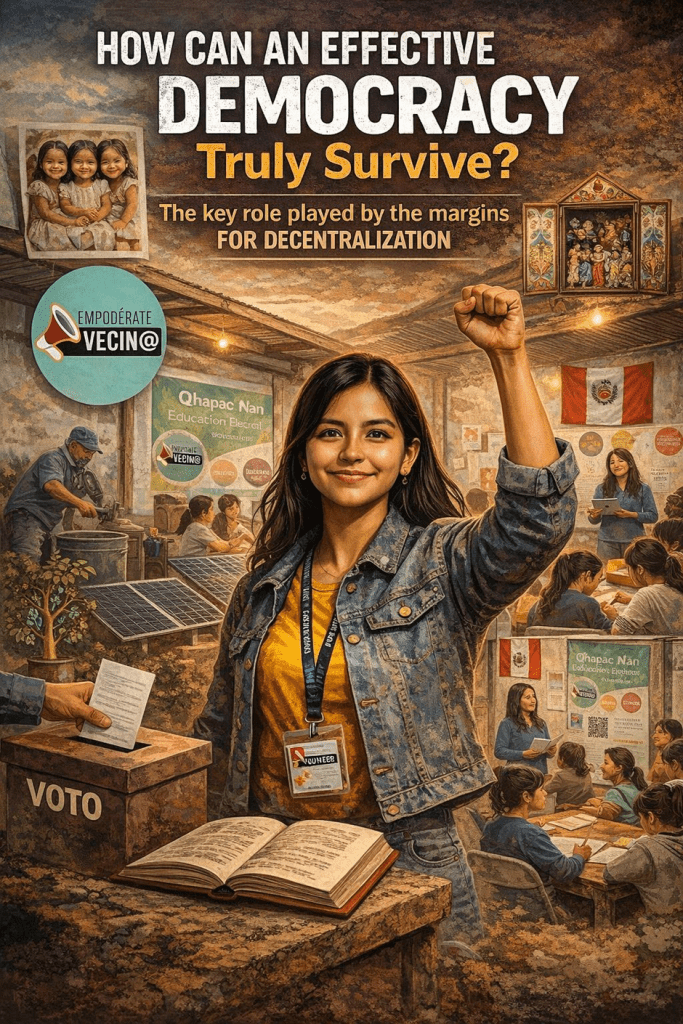 In this way, the concept of Qhapaq Ñan — a Quechua term associated with the Inca road system — is reimagined as a metaphor of connection: civic pathways that cross territories where institutional democracy often arrives late or incompletely. Because it is precisely there — in the margins — where decentralized democracy must be strengthened: where the State, technology, academic opportunities, and international connection rarely converge.